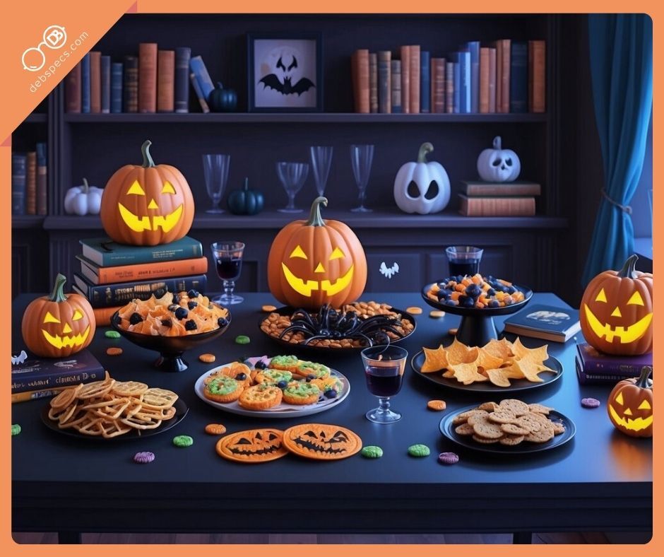 Styling Tip: Label snacks with punny names (“Ghoulish Guac,” “Vampire Bites”) for charm.