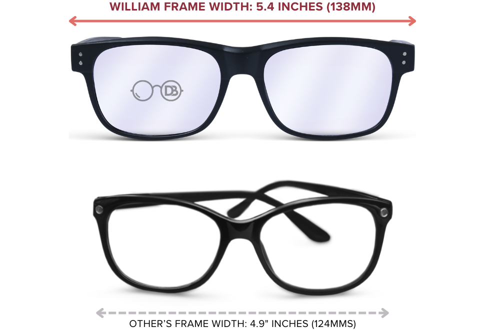 When in doubt, choose the frame that’s slightly wider rather than tighter. A little extra room is more comfortable and can often be adjusted. You can also start with our widest styles (like Big Guy) and work down from there.